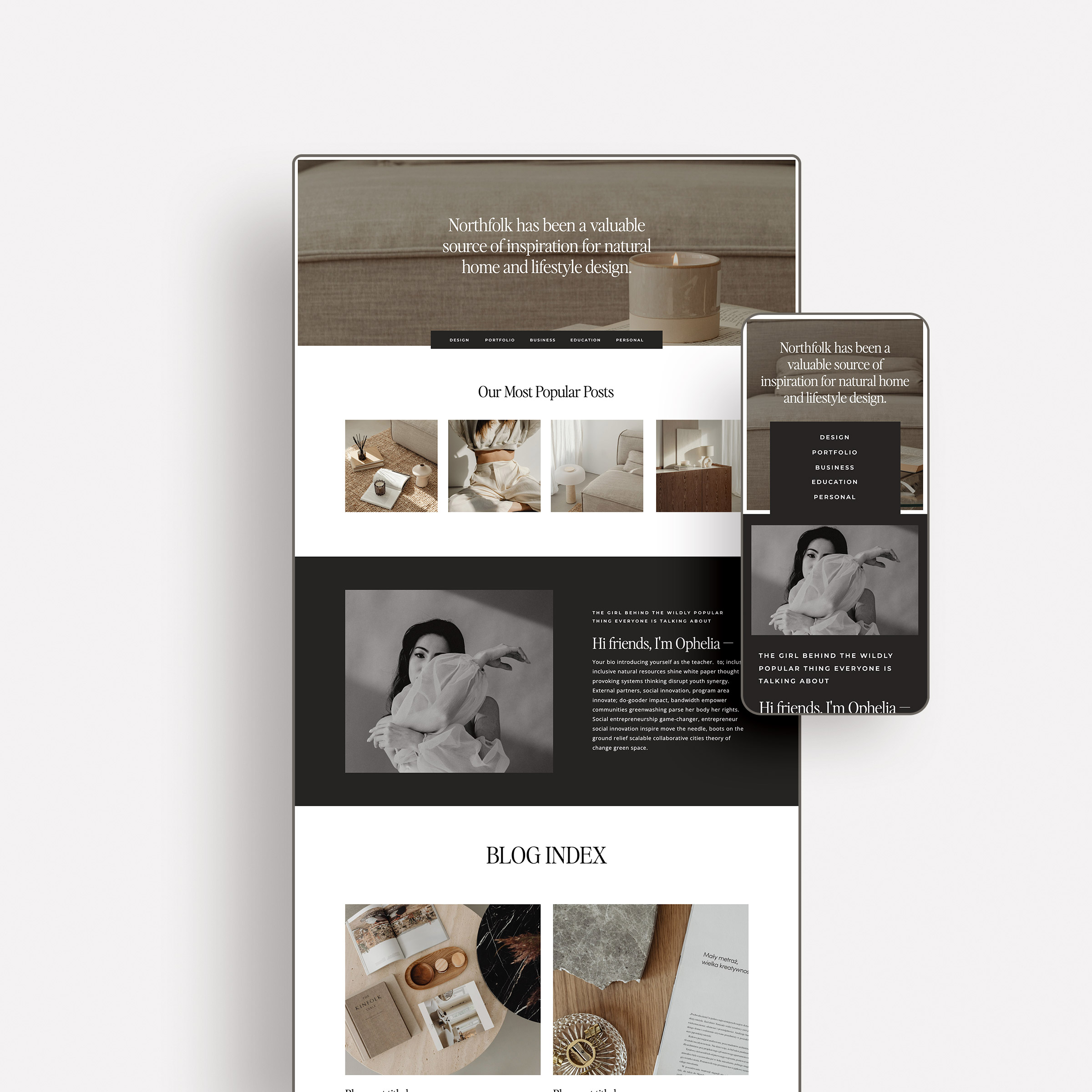 "I'm in love with everything Northfolk creates! Easy navigation, minimalist style, and superb service can all be expected from Sam & Rachel. My site is simple, sexy, and makes me PROUD AS HELL to share it with my audience."